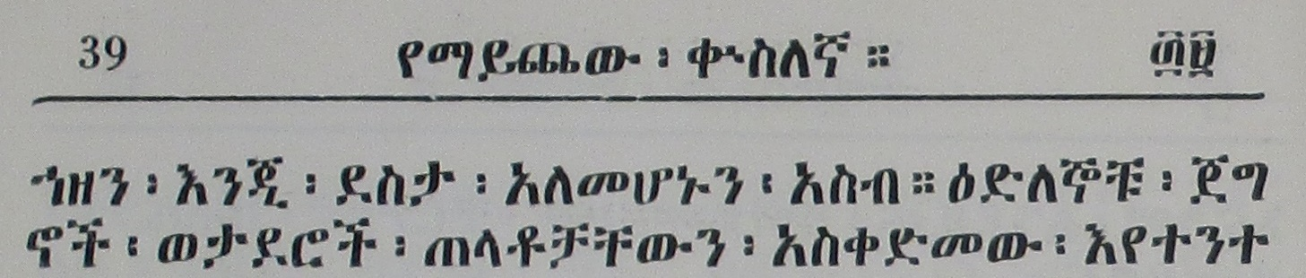 Maṣḥafa Sawāsew Wages Wamazgaba Qālāt Hadis, K. W. Kifle. Pages 65 & 159. Artistic Printers, 1955 (1948 EC). Addis Ababa.