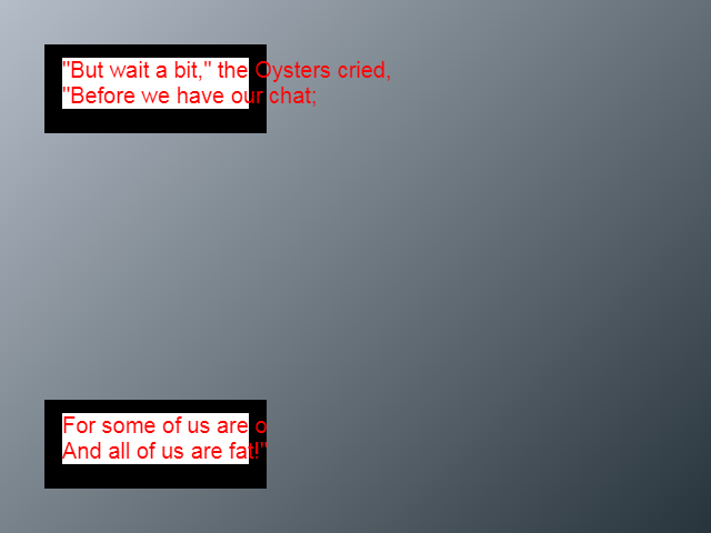 each inline element coincides with the end of the div element's parallel time container, so that once a word is painted, it remains in the region (on its rendered line) until the div element's active time interval lapses.