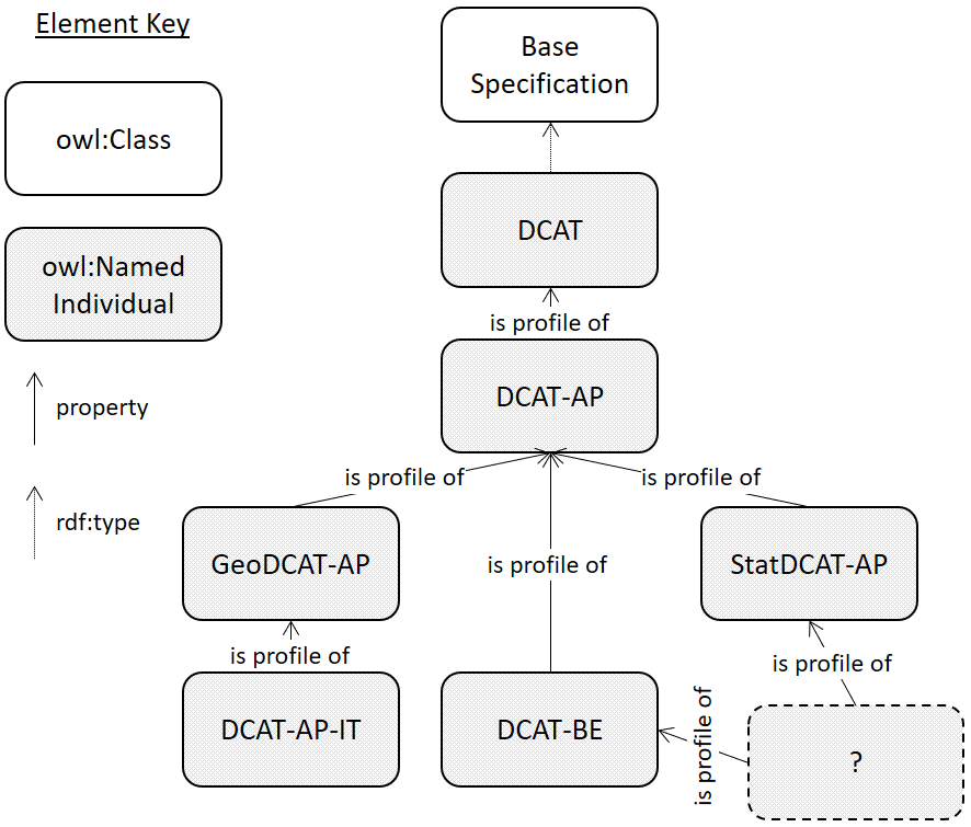 This profile hierarchy is represented graphically in the figure above and in RDF (turtle) below.