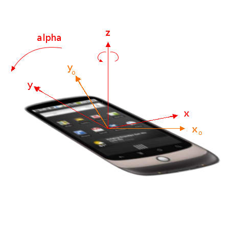 The first DOM event provided by the specification, deviceorientation, supplies the physical orientation of the device, expressed as a series of rotations from a local coordinate frame.