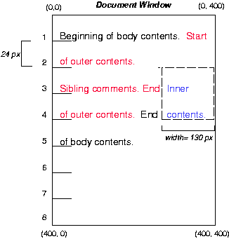 <BODY> <P>Beginning of body contents. <SPAN id=outer> Start of outer contents. <SPAN id=inner> Inner contents.</SPAN> <SPAN id=sibling> Sibling contents.</SPAN> End of outer contents.</SPAN> End of body contents. </P> </BODY>