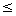 2264 | 2165,2172 | bkd | ≤ | leqslant R: less-than-or-eq, slant | ≤ | less-than-or-eq, slant | ≤ | | | leq,le | |  | LessEqual,<= |