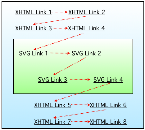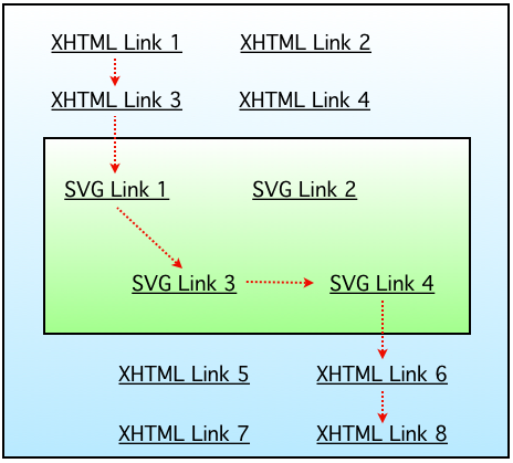 Authors use <param name="focusable" value="hierarchical" /> to select hierarchical (activatable) focus handling for a referenced child. A user, navigating to such a child element, will have the option to activate it, or to move on, to the next focusable element. Activating the child, will provide the user with access to the child's interactivity, its focusable elements, such as embedded links and its access keys. The user must deactivate an activated child element, in order to gain access to the parents focus traversal again.
