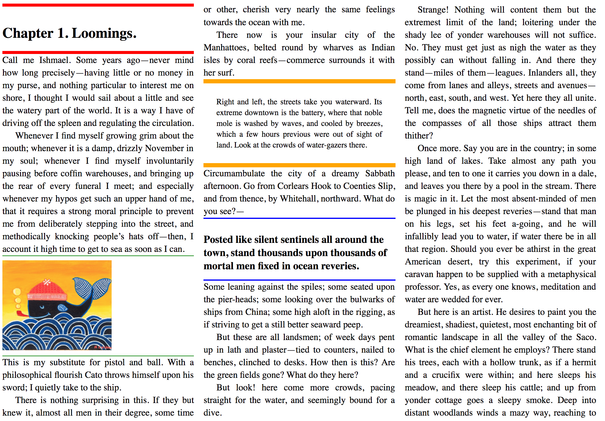 While consistent use of the block step properties can produce the strictly gridded layout needed for parallel content flows, per-element specification of the step size also allows some interruptions to take their natural size in the flow, restarting the vertical rhythm afterwards. This can be useful in single-column layouts where the vertical rhythm is important to maintain visual continuity, but there is nothing alongside to align to. In these cases, large interruptions which visually disconnect the flow before and after can prioritize optimal spacing around the item over strict adherence to a continuous grid (by specifying block-step: none, the initial value).