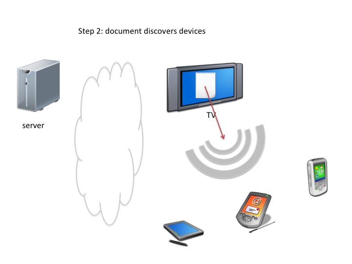 As there are more devices in the home, some generic and some task-specific, and with varying capabilities (including different UI methods), there is a growing need to spread an application across different devices to achieve service distribution. But the service usually "enters" the home network through one particular device. The service running entirely on the initial device, as part of other use cases, can discover its environment and determine that other devices could meaningfully contribute to the quality of experience. From then on, the service needs to send part of "itself" to other devices.