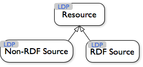 The LDP-NRs and LDP-RSs are simply sub-types of LDPRs, as illustrated in Fig. 2 Class relationship of types of Linked Data Platform Resources.