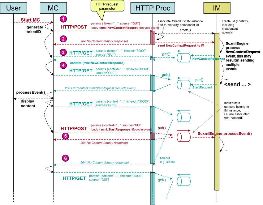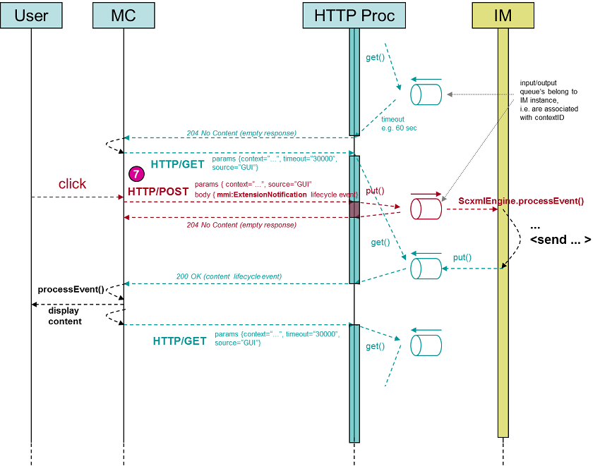 The HTTP processor of the Interaction Manager is expected to handle HTTP/GET requests (which are used by the Modality Component to receive lifecycle events) as following: