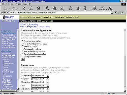 that a person could use to change the way a course home page is displayed. The