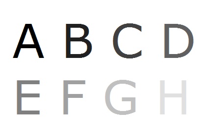 The contrast ratio needed to distinguish objects varies from person to person. This ability is called the person's contrast sensitivity. A person who can distinguish between objects that have a low contrast ratio is very contrast sensitive. A person who requires high contrast to distinguish between objects has a low sensitivity. The Peli Robson Contrast Sensitivity Chart measures contrast sensitivity by keeping font size constant and varying contrast ratio. This differs from acuity testing that keeps contrast ratio constant and varies size (The design of a new letter chart for measuring contrast sensitivity). The image below demonstrates how the contrast sensitivity chart works.