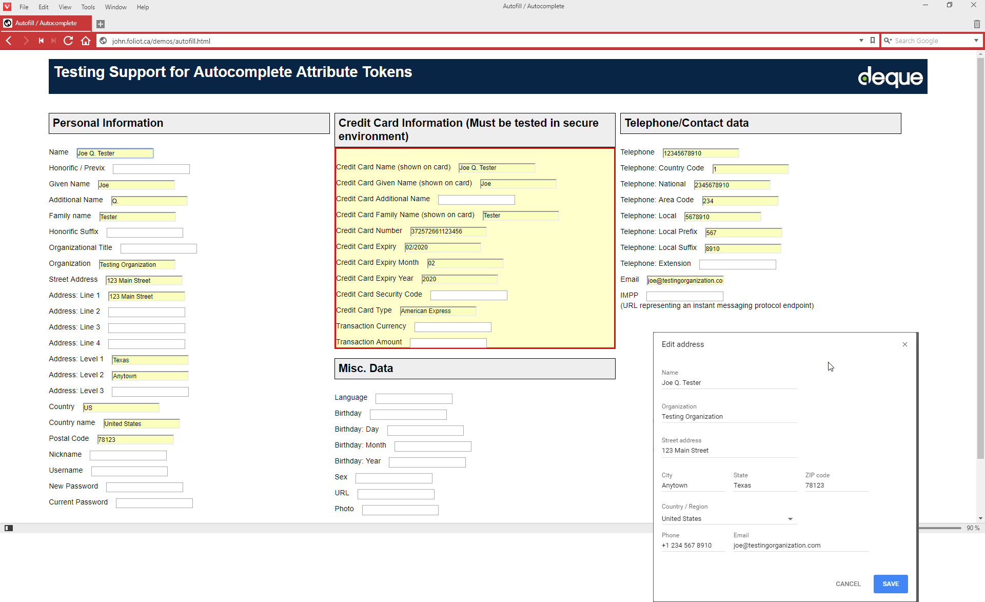 Screen capture: Vivaldi browser