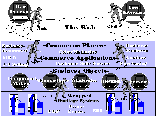 connected to a Trading Rules Agent (a man and a bookcase), a