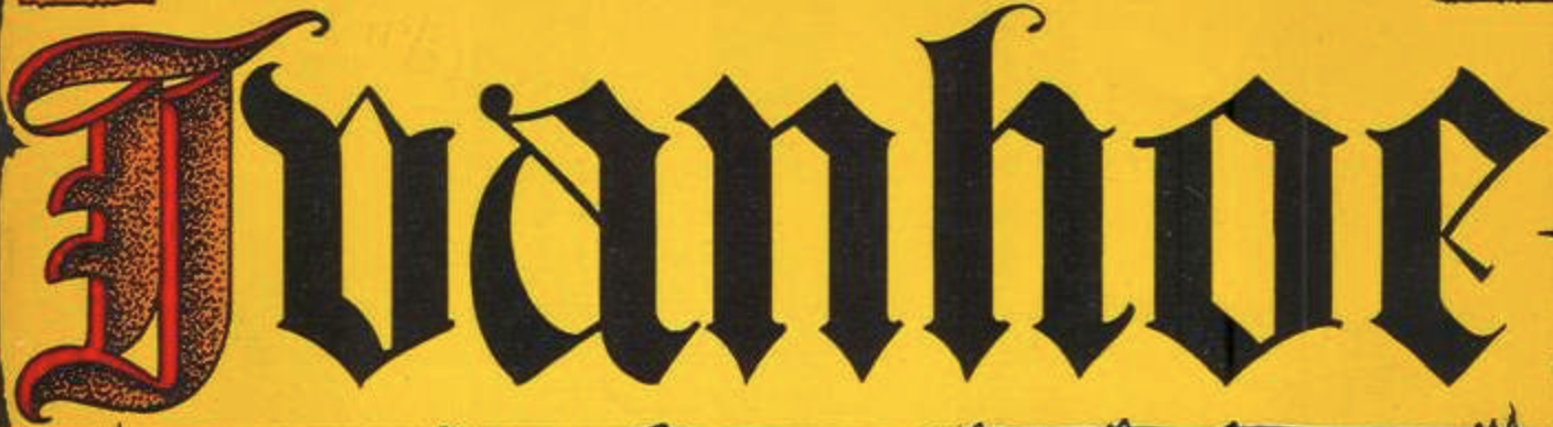 The following image is a close up of the cover of a Classic Comics book titled "Ivanhoe" illustrating a font that looks like an old Gothic style font.