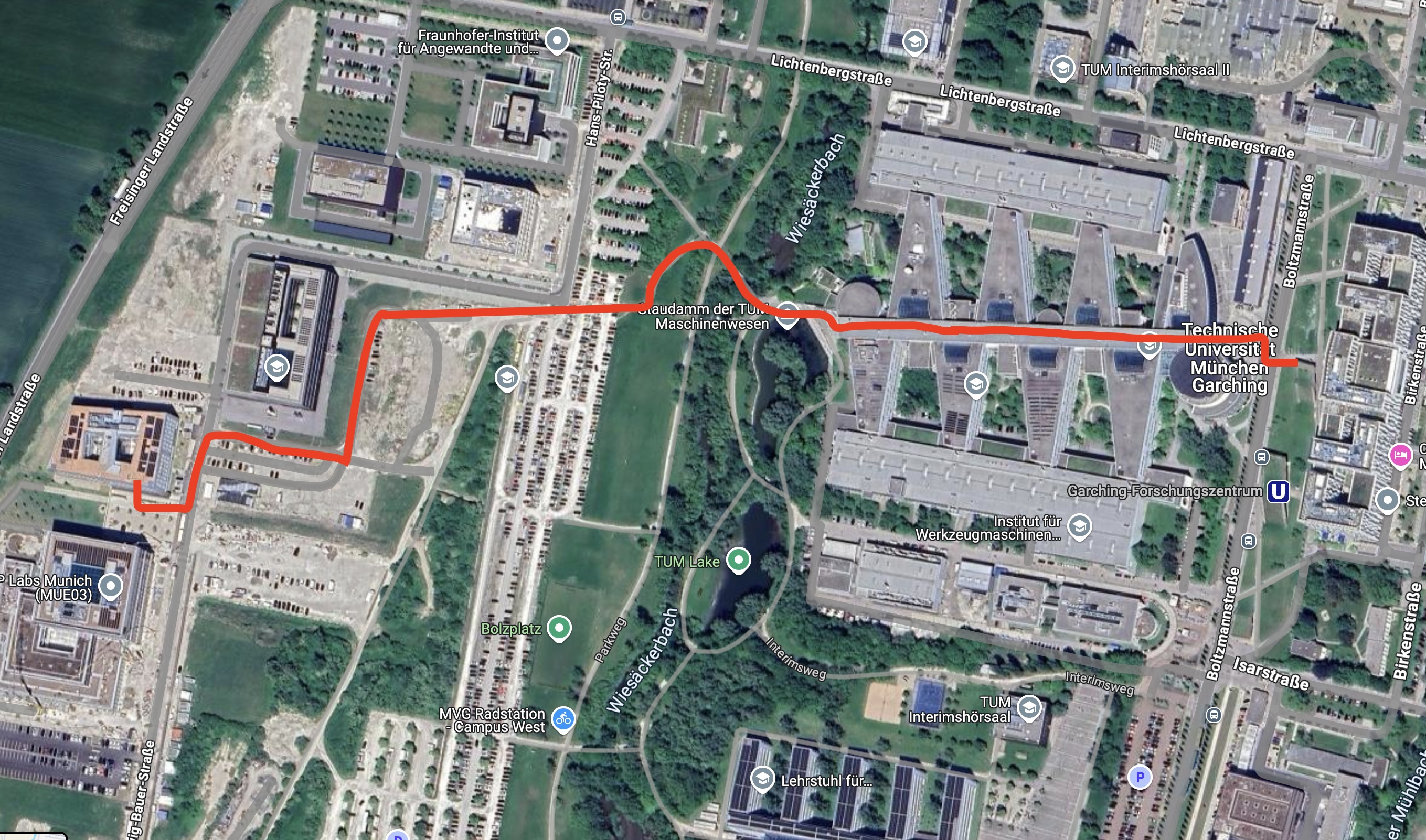 Walking path from subway to Siemens through the mechanical engineering building