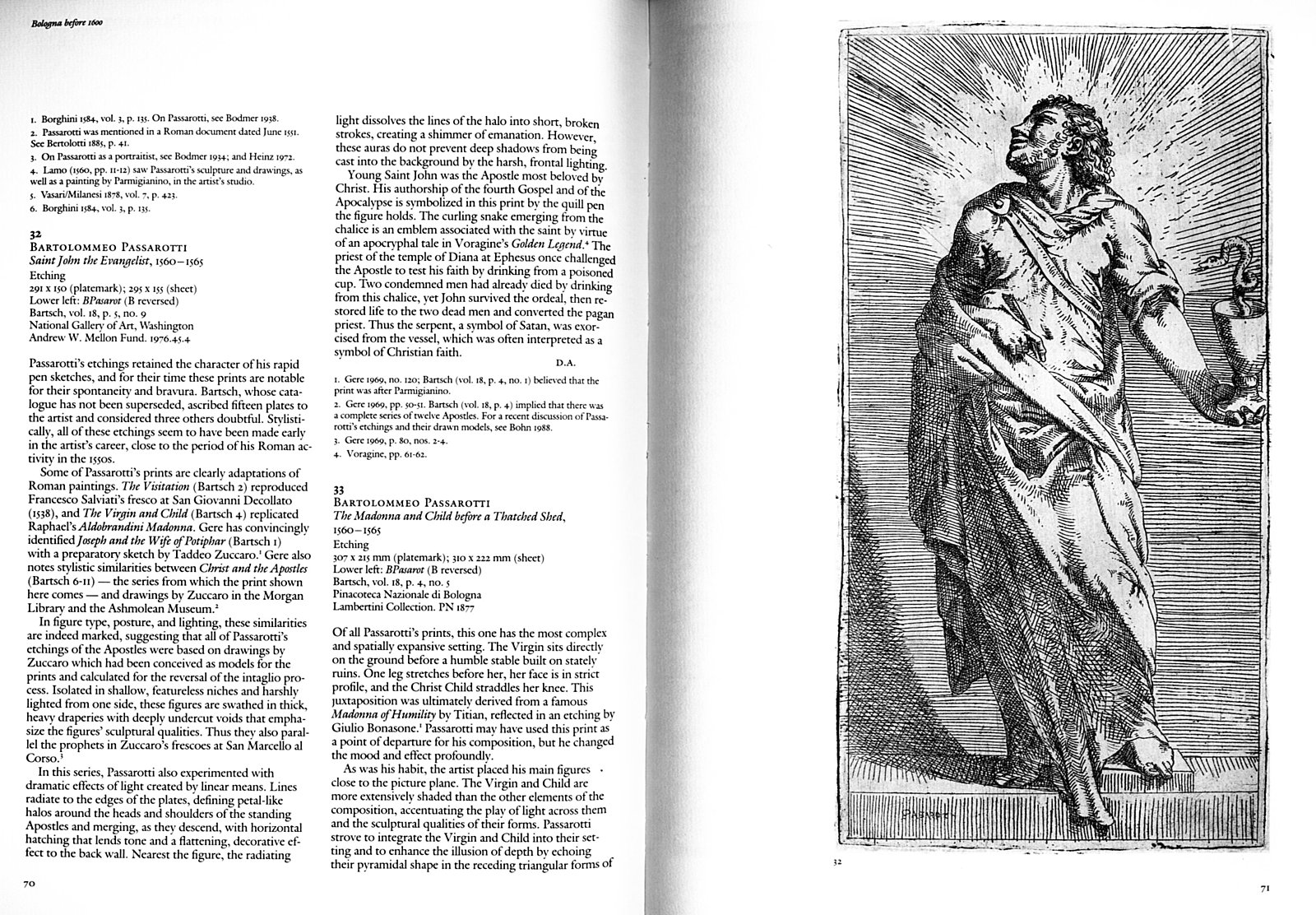 Another modern book, an exhibition catalogue, in which footnotes are really per-item endnotes, and go at the end of the corresponding short section. |