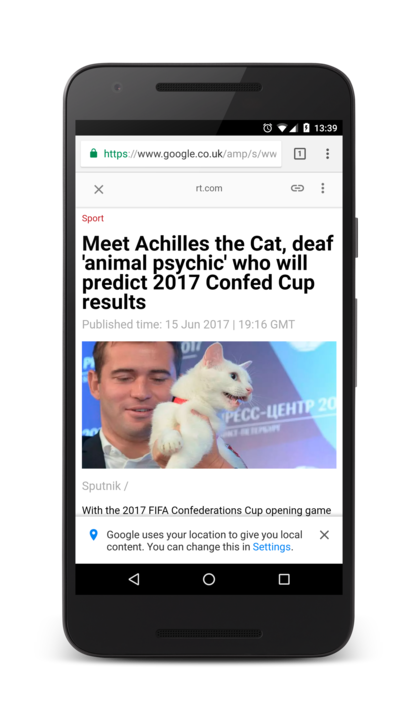 Instead of https://www.rt.com/sport/… you’ll get https://www.google.co.uk/amp/ s/www.rt.com/document/…