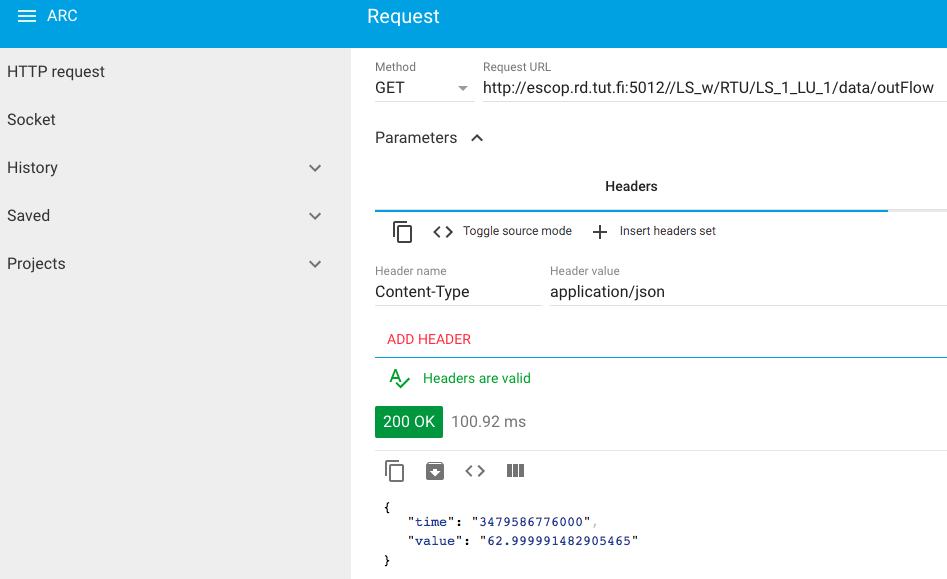 The very same app can be used to interface industrial equipment. For example, the simulator of the oil lubrication system located is here. (Actual systems are usually put to the protected, private networks that are not accessible on the global network). In order to check a value of the flow meter device one could following the instructions make the request: