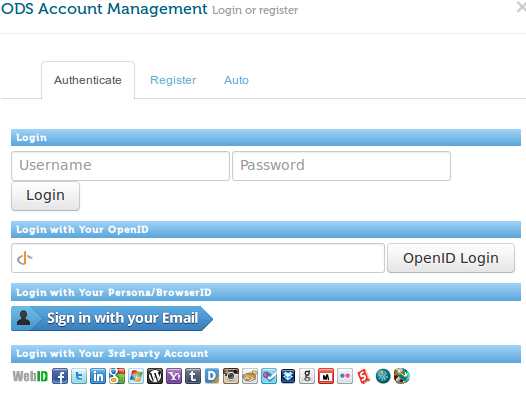 Fantastic work from Openlink in creating an open source widget that allows users to login via account from WebID, Persona, OpenID, Facebook, Twitter, LinkedIn, Google, Windows Live, WordPress, Yahoo, Tumblr, Disqus, Instragram, Bitly, Foursquare, Dropbox and Github! This widget can be used to deliver the read write web to a huge audience of existing accounts.