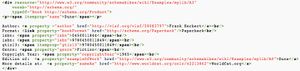 The Example Library is a collection of wiki pages demonstrating the proposed markup for Creative Works of various types. The objective is to demonstrate vocabulary usage, and markup examples. For instance check out this simple example of a paperback book, including a link to a description of the conceptual Work of which it is an example, plus a link to a description of the same book at WorldCat.org.