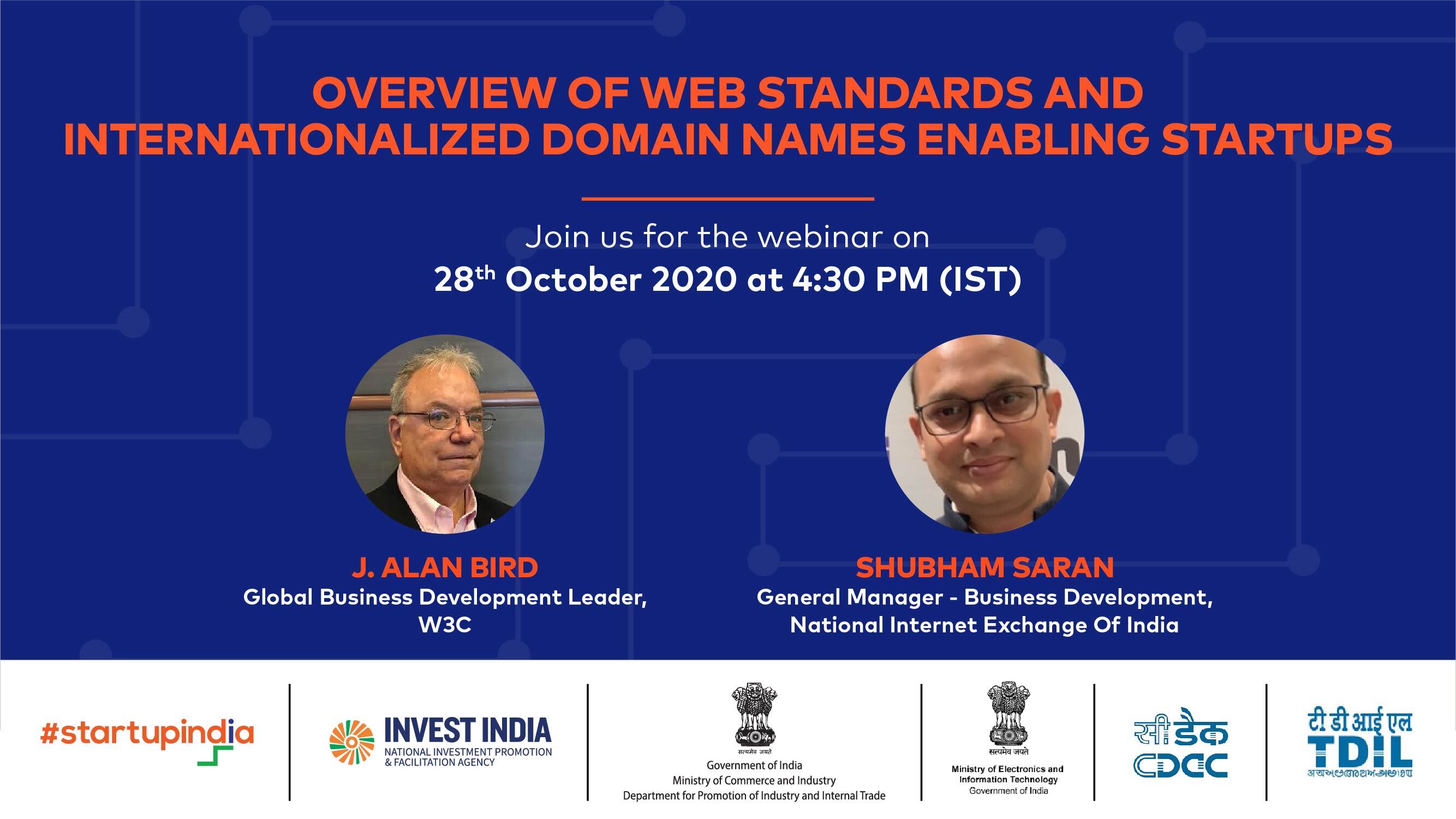 J. Alan Bird, Global Business Development Leader at W3C will be presenting the current work going on in W3C with a focus on the value of having startup companies from India participate in that work. There will be discussion on the Industries W3C is addressing, the tools available for Developers and the ways that startup companies can help with the Internationalization work that is going on relative to Indic Languages.