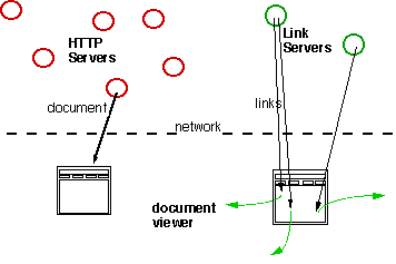 The provision of an independent link service is designed to allow any information environment to be augmented with hypermedia functionality, whether or not it provides link following facilities itself. The WWW, of course, has a well-established method for expressing links as attributes of its native document format, and so the link service will provide a complementary set of links on top of those standard facilities. By contrast, a simple text editor (such as Window's Notepad) has no built-in hypertext links, and so the link service provides an otherwise non-existent service to such users. Without a link service, Web users can follow links from HTML documents or `imagemapped' pictures into dead-end media such as spreadsheets, CAD documents or text; with the link service they can also follow links out of these media again [6].