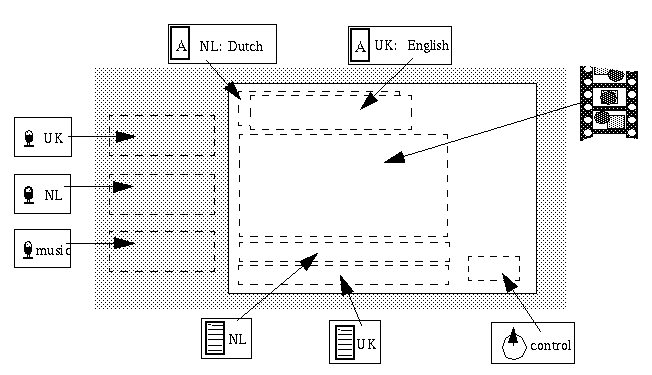 The problem with the composite data view is that is does not offer the user many alternatives above those available with broadcast television: you can tune in a page, you can watch a `program' and you can turn the presentation off. The discrete data model provides other possibilities. If the video, music, voice-over and sub-title media streams all were separate objects, the presentation could be tailored to meet the needs of the viewer. For example: