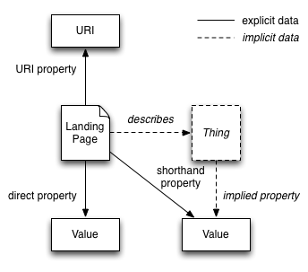 As we have seen, the properties used within data need to be documented to avoid developer confusion about what entities they apply to. A data format that mixes properties about landing pages or records and properties about the things those landing pages or records describe is not necessarily ambiguous: all that's required for developers to understand what the properties actually apply to is for the meaning of the property to be documented.