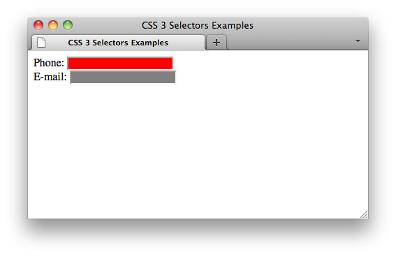 <body> <form> Phone: <input type="tel"><br> E-mail: <input type="email" disabled="disabled"> </form> </body>