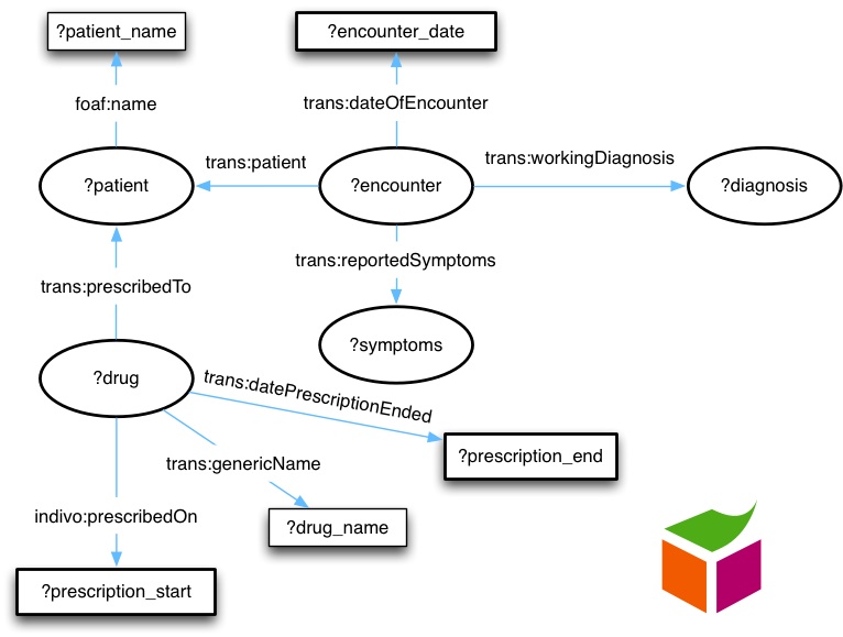 Below is an initial draft (for the publication effort) of a visualization of the data elements involved in the first query