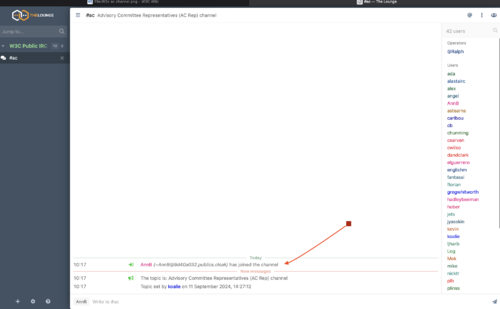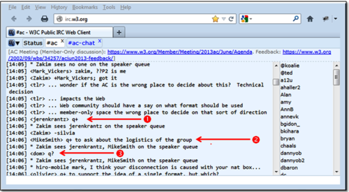 IRC (Internet Relay Chat) is a very important tool for participating in W3C and keeping records of W3C meetings. Please join in!
