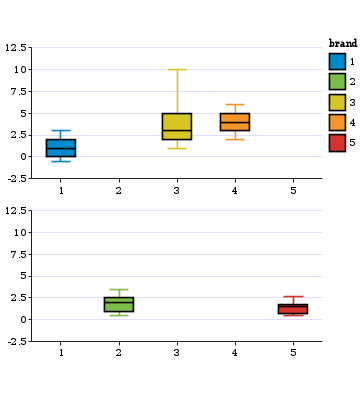 A paneled box plot. Uses aria-type to allow a user to navigate between the parts of the box and whisker using the spacebar, if they wish. aria-type provides an author fine control over structure within a feature and would be even more important for box and whisker plots that include outliers. Note this is the same as the paneled box plot below except a user navigates between panels (graphics-figure) using the spacebar as the author has decided that the two panels should be treated as different features.